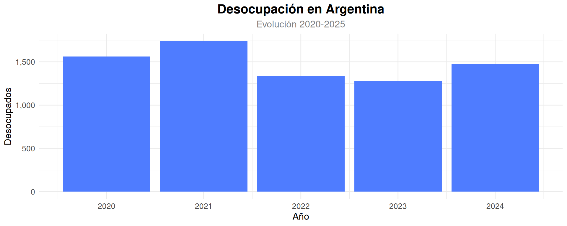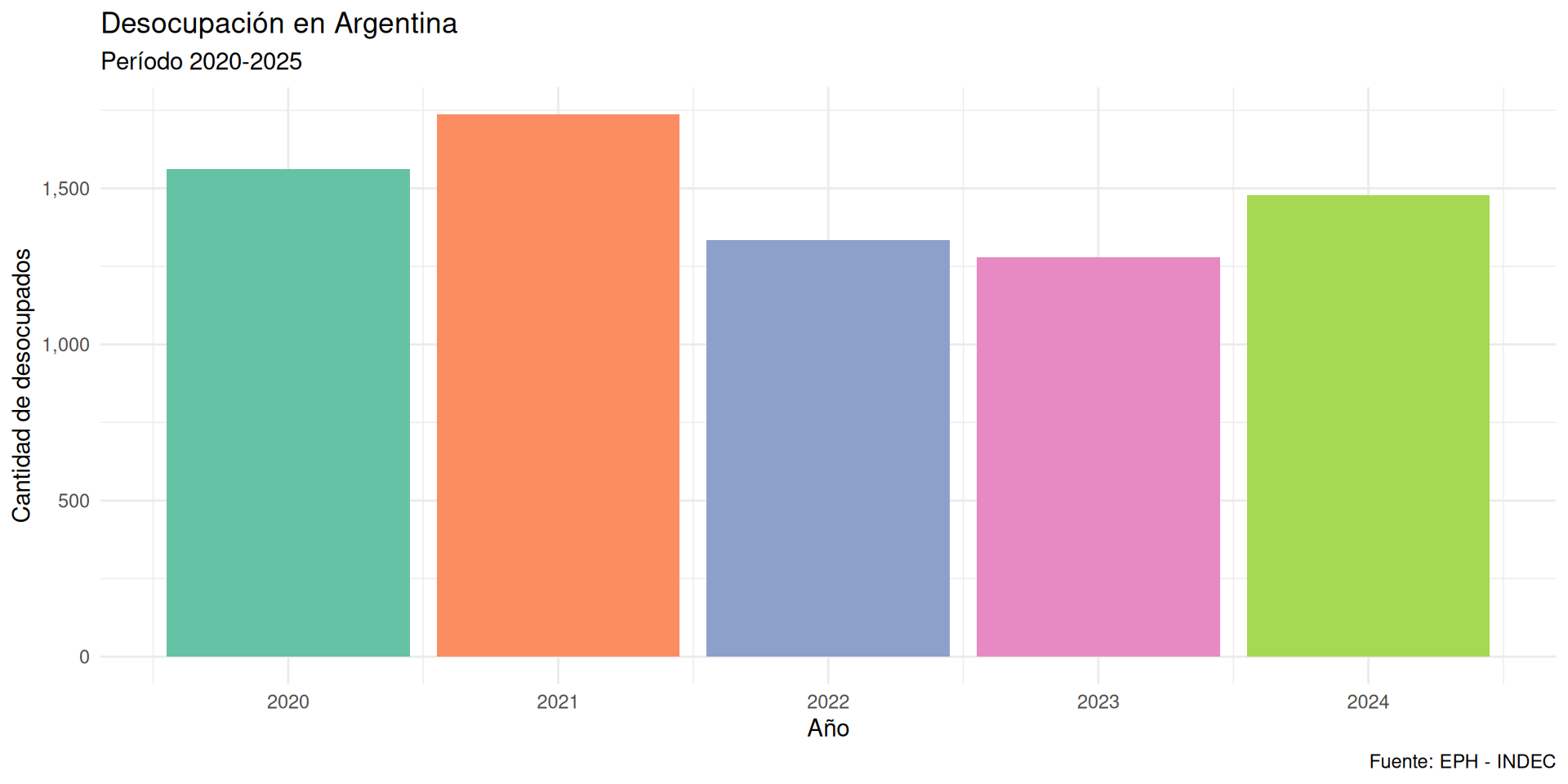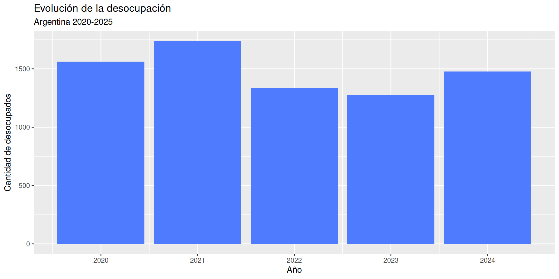 ggplot(tbl_desocup_2020_25, aes(x = Anio, y = n)) +