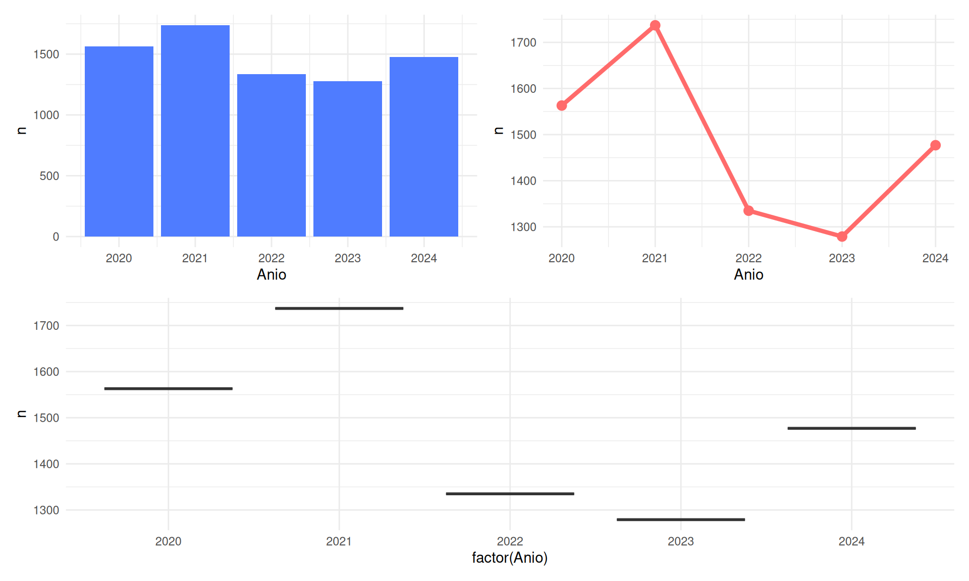 )annotate(), geom_text(), geom_label()ggplotly() para gráficos interactivosggsave(){patchwork}Recordá: La práctica hace al maestro. ¡Experimentá sin miedo!