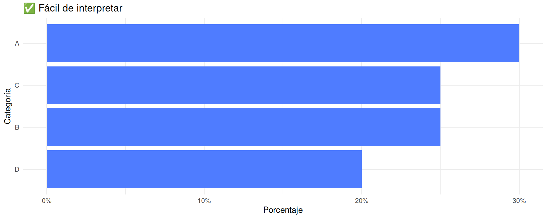 scale_x_continuous(): númerosscale_y_discrete(): categoríasscale_x_date(): fechasscale_y_log10(): transformacionesMapeo: aes(x = variable, y = variable)